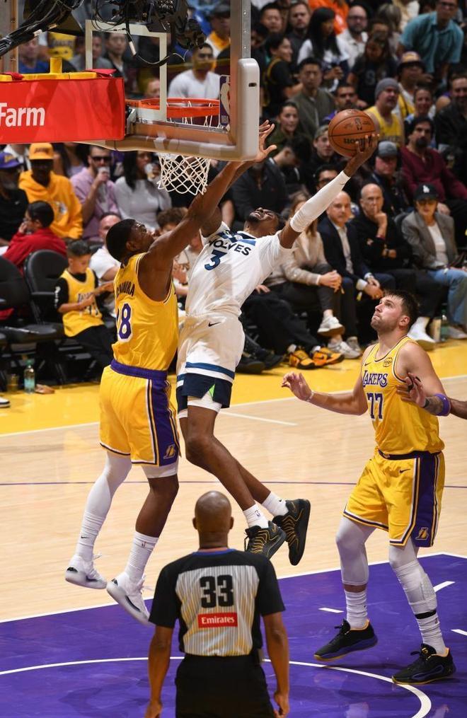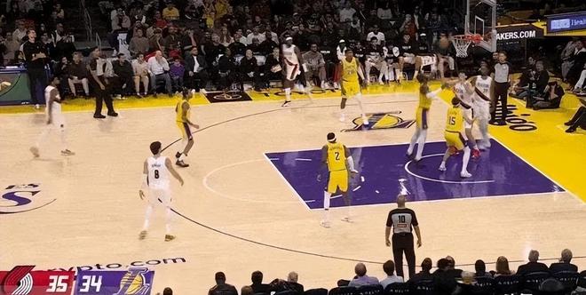 格兰特成功上分,阿夫迪亚滑翔上篮,韦斯利不断地冲击篮筐进行反击,而湖人以38-37分暂时领先。