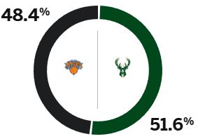 赛前,美媒ESPN预测本场比赛,尼克斯胜率为48.4%,雄鹿胜率为51.6%。